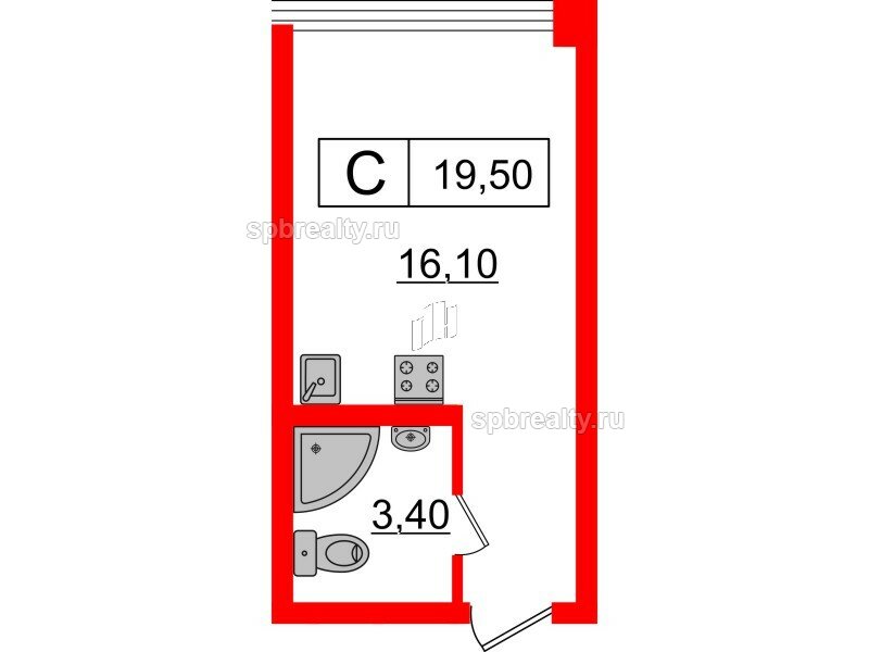 Общая площадь - 19.5 кв.м