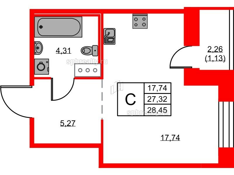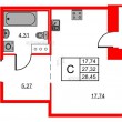 Общая площадь - 28.45 кв.м
