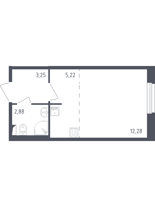Жилая - 12.28 кв.м, Кухня - 5.22 кв.м