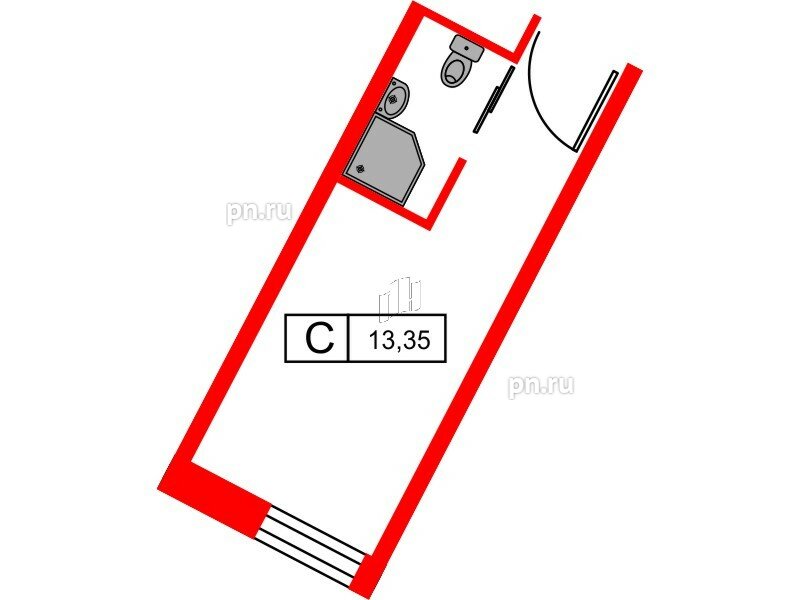 Общая площадь - 13.35 кв.м