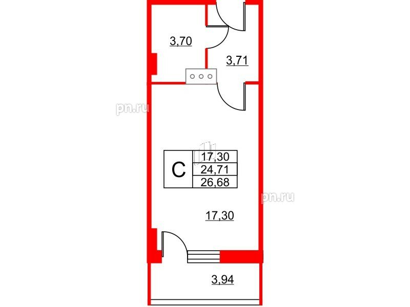 Студия, 26.68 кв.м, 3 этаж — 4 796 000 руб. (179 760 руб./м2)