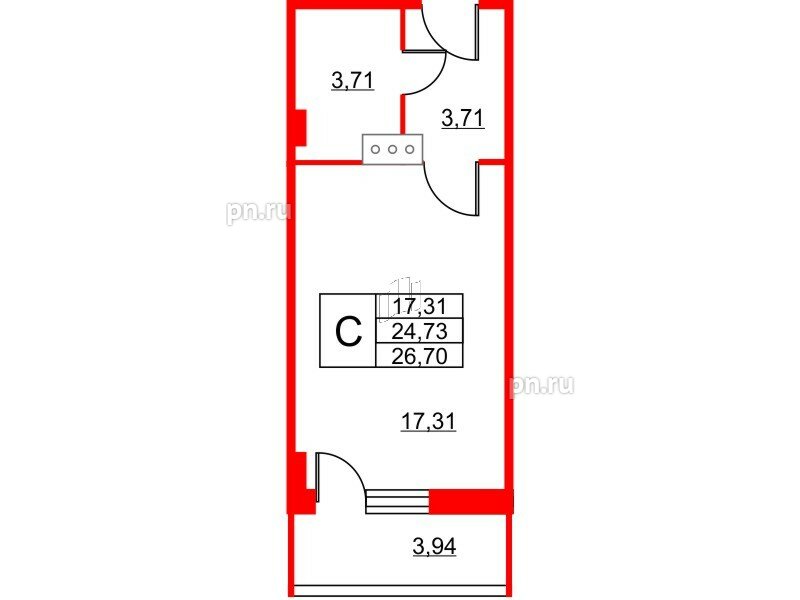 Студия, 26.7 кв.м, 4 этаж — 4 800 000 руб. (179 775 руб./м2)