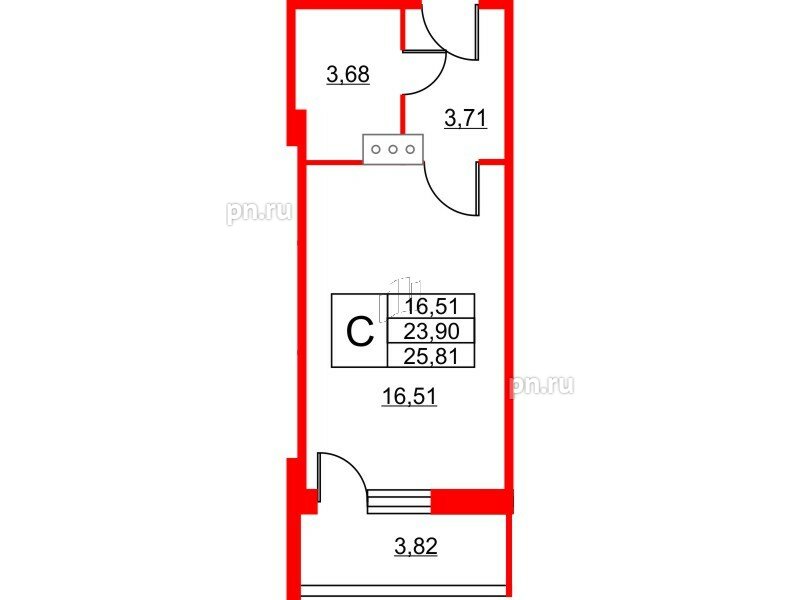 Студия, 25.81 кв.м, 6 этаж — 4 715 000 руб. (182 681 руб./м2)