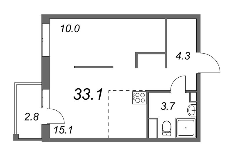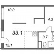 Жилая - 10 кв.м, Кухня - 15.1 кв.м
