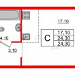 Площадь комнат - 17.1 кв.м
