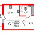 Общая площадь - 23.3 кв.м