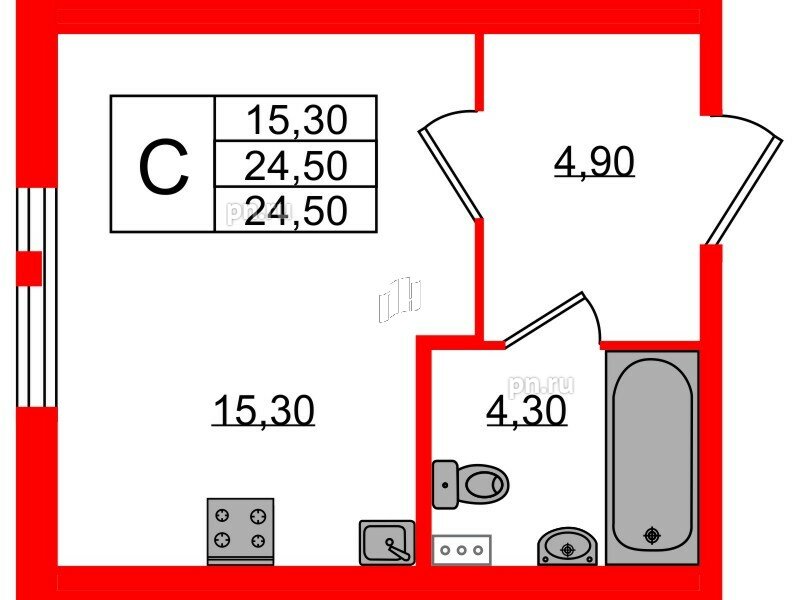 Общая площадь - 24.5 кв.м