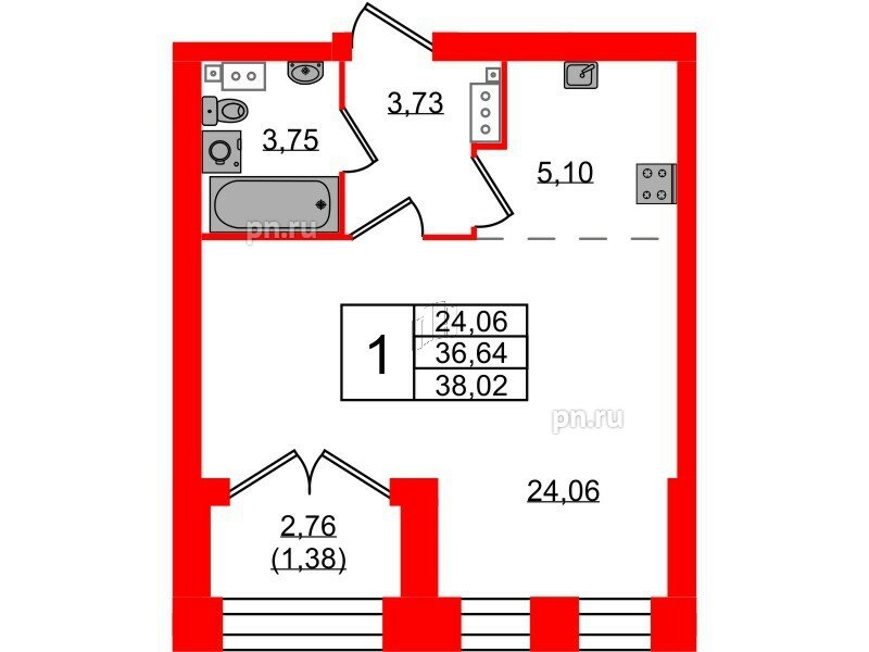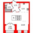 Жилая - 24.06 кв.м, Кухня - 5.1 кв.м