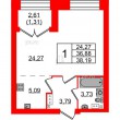 Площадь комнат - 24.27 кв.м
