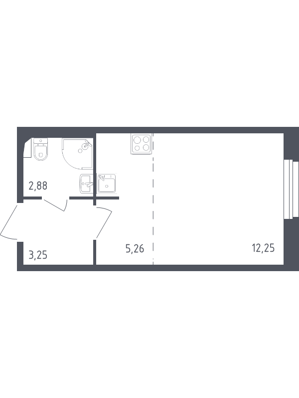 Жилая - 12.25 кв.м, Кухня - 5.26 кв.м