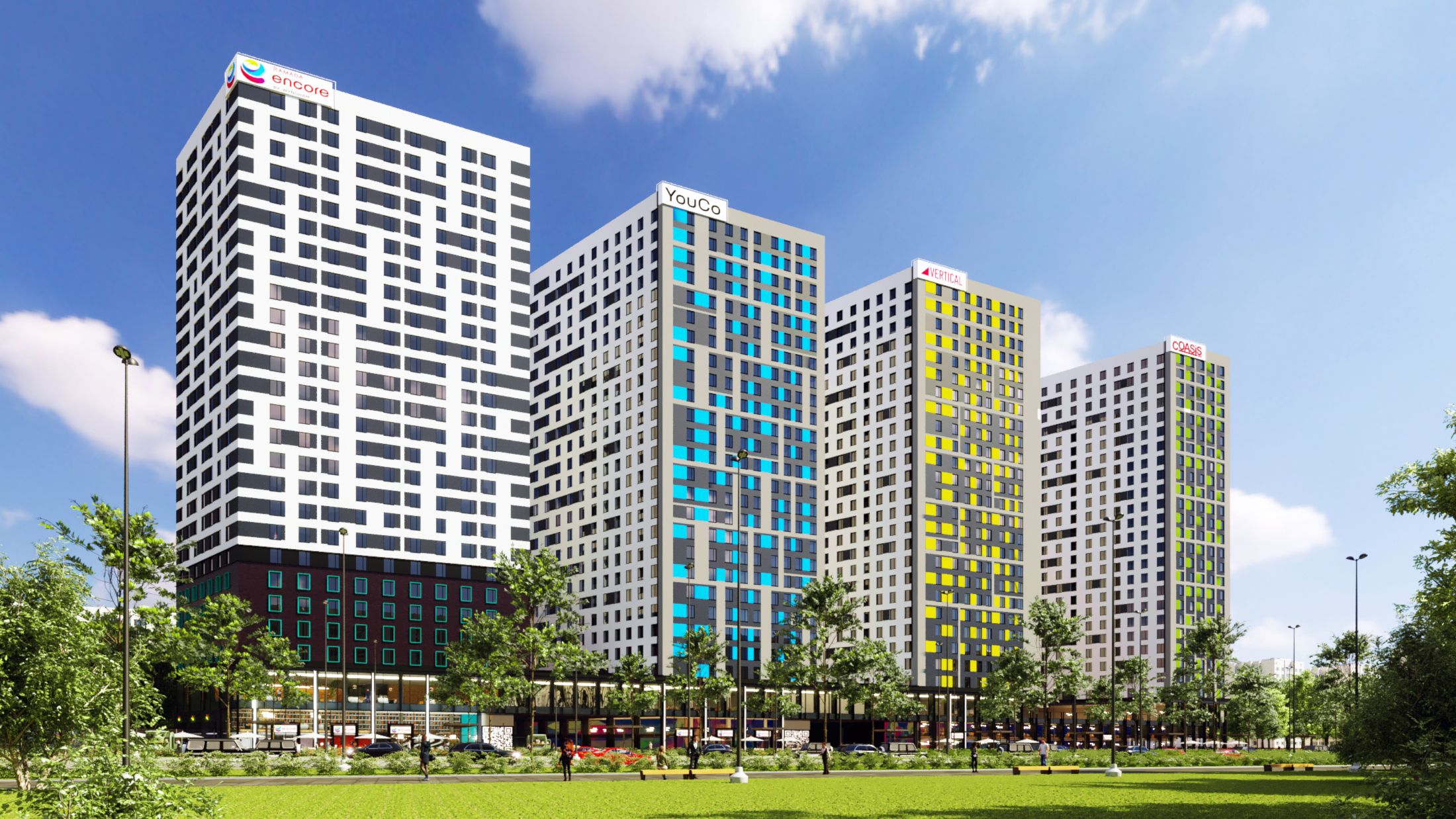 Комплекс из 5 монолитных корпусов займет участок в 1,25 га. Первый из них спроектирован 26-этажным, на 469 юнитов. Всего в проекте предусмотрено порядка 2 тысяч апартаментов.
