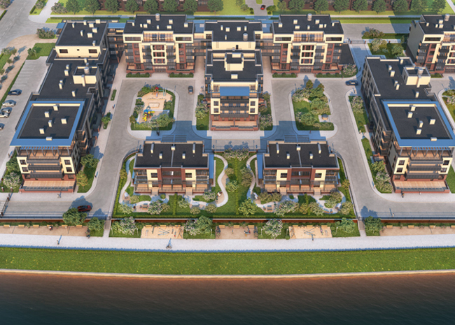 В состав квартала войдут комфортабельные малоэтажные малоквартирные секционные кирпично-монолитные дома с навесными вентилируемыми фасадами и коттеджи, рассчитанные на две семьи каждый. Для комфортной жизни предлагаются роскошные апартаменты от 75 до 360 кв. м. с удобными планировками, высокими потолками, просторными террасами с изумительными панорамными видами на канал и парк, предусмотрен вместительный подземный паркинг. На территории квартала будут осуществлены ландшафтные работы по индивидуальному дизайн проекту. Централизованная охрана и профессиональная служба эксплуатации обеспечат полную безопасность и максимальный комфорт каждого жителя комплекса.