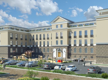 Отличительной особенностью этого дома является возможность устройства каминов в квартирах третьего и мансардного этажей. У квартир внутри двора будут французские балконы. Еще одно преимущество для жильцов – это организация подсобных помещений на цокольном этаже.