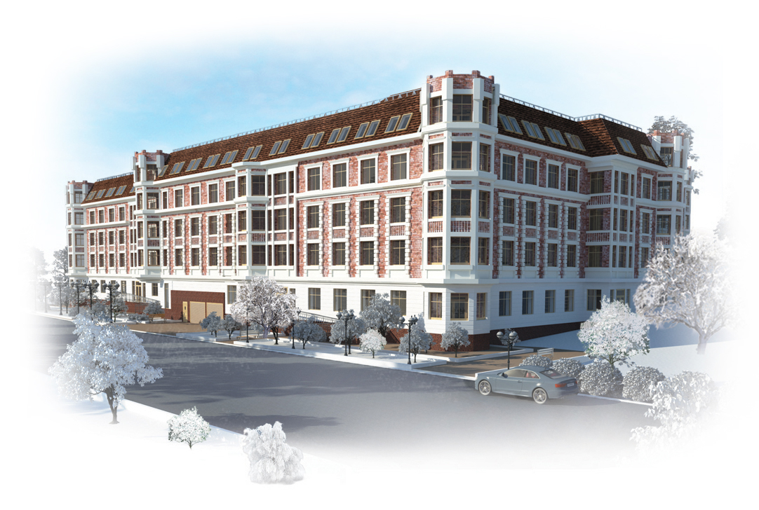 Комплекс, состоящий из 3-х жилых этажей и мансардного этажа. Дом имеет замкнутый контур с закрытым, благоустроенным внутренним двором. В подвальном и цокольном этажах, размещается автостоянка на 118 автомашин.