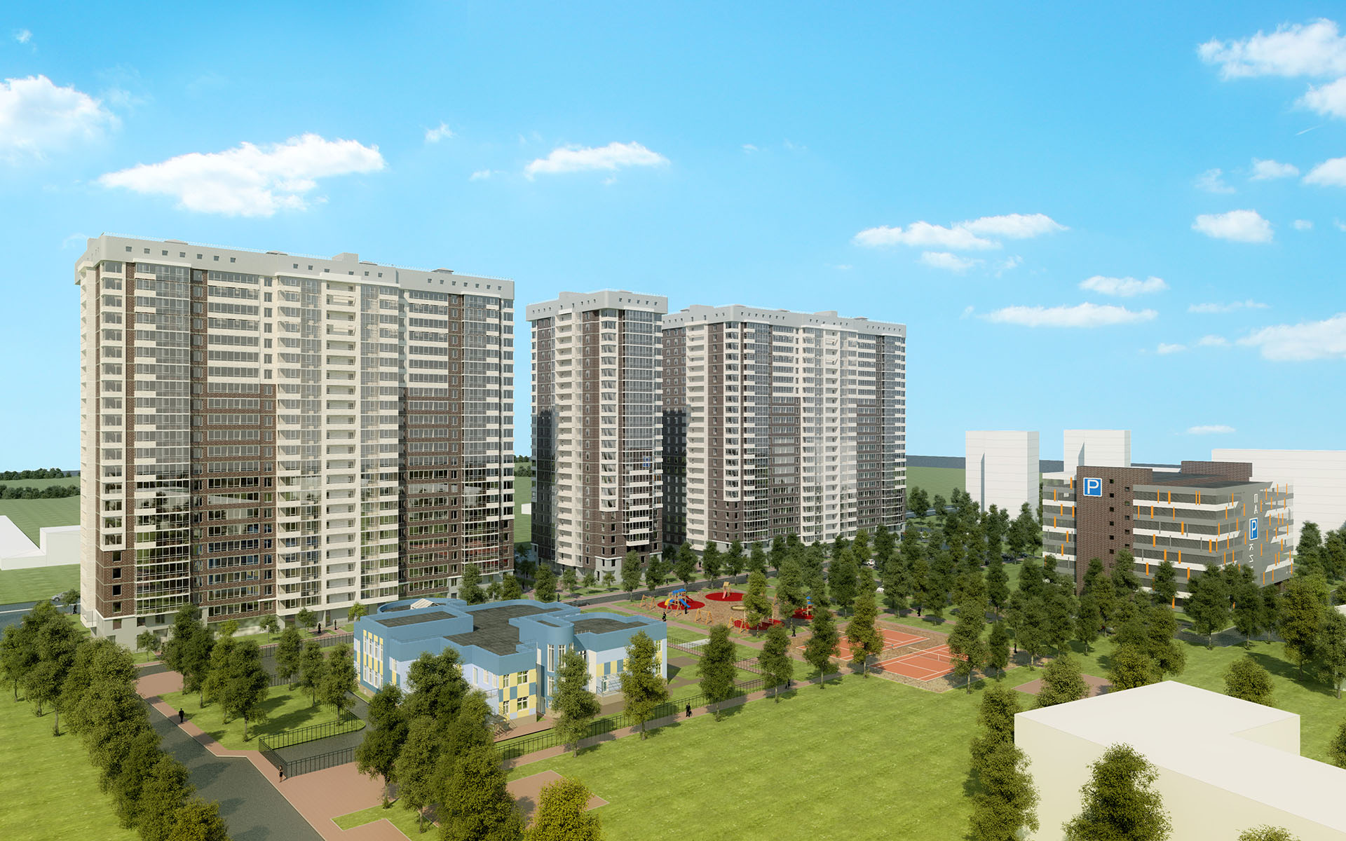Первая очередь комплекса предполагает строительство 24-этажного кирпично-монолитного жилого дома с 660 квартирами и встроенными коммерческими помещениями и многоярусного паркинга. Удобные планировки разнообразных квартир - от небольших студий площадью 25 кв. м до просторных трехкомнатных квартир площадью около 100 кв. м, современные инженерные системы и повышенные меры безопасности (закрытый периметр, видеонаблюдение и домофоны) удовлетворят самых взыскательных покупателей