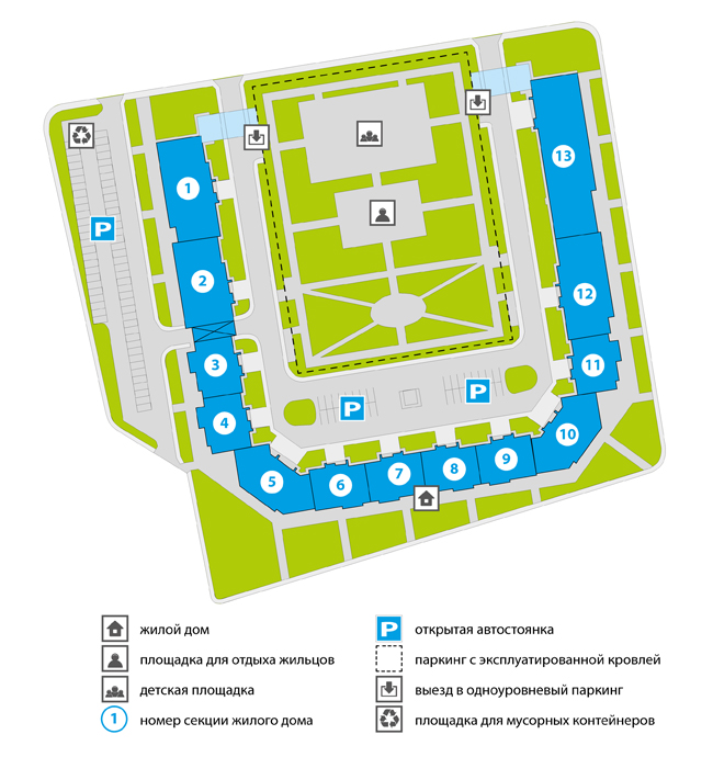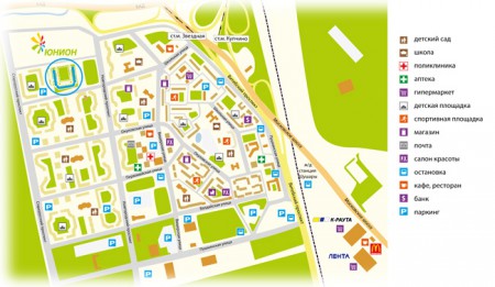 Согласно проекту ЖК «Юнион» будет иметь удобные зоны отдыха с оборудованными детскими площадками и прогулочными дорожками. Для автолюбителей предусмотрена одноуровневая наземная автостоянка на 322 м/м с эксплуатируемой кровлей, а также открытые площадки для гостевой парковки.