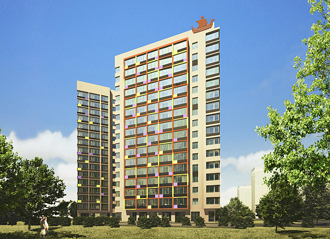 Архитектура дома делает его доминантой въездной группы города. В доме предусмотрено максимально возможное количество квартир с восхитительными видами на Неву, Центральный городской парк, зеленые просторы. Проектом предусмотрены светлые эргономичные 1, 2, 3-комнатные квартиры и квартиры-студии. Площади квартир площадью от 25,7 до 91,3 кв.м.