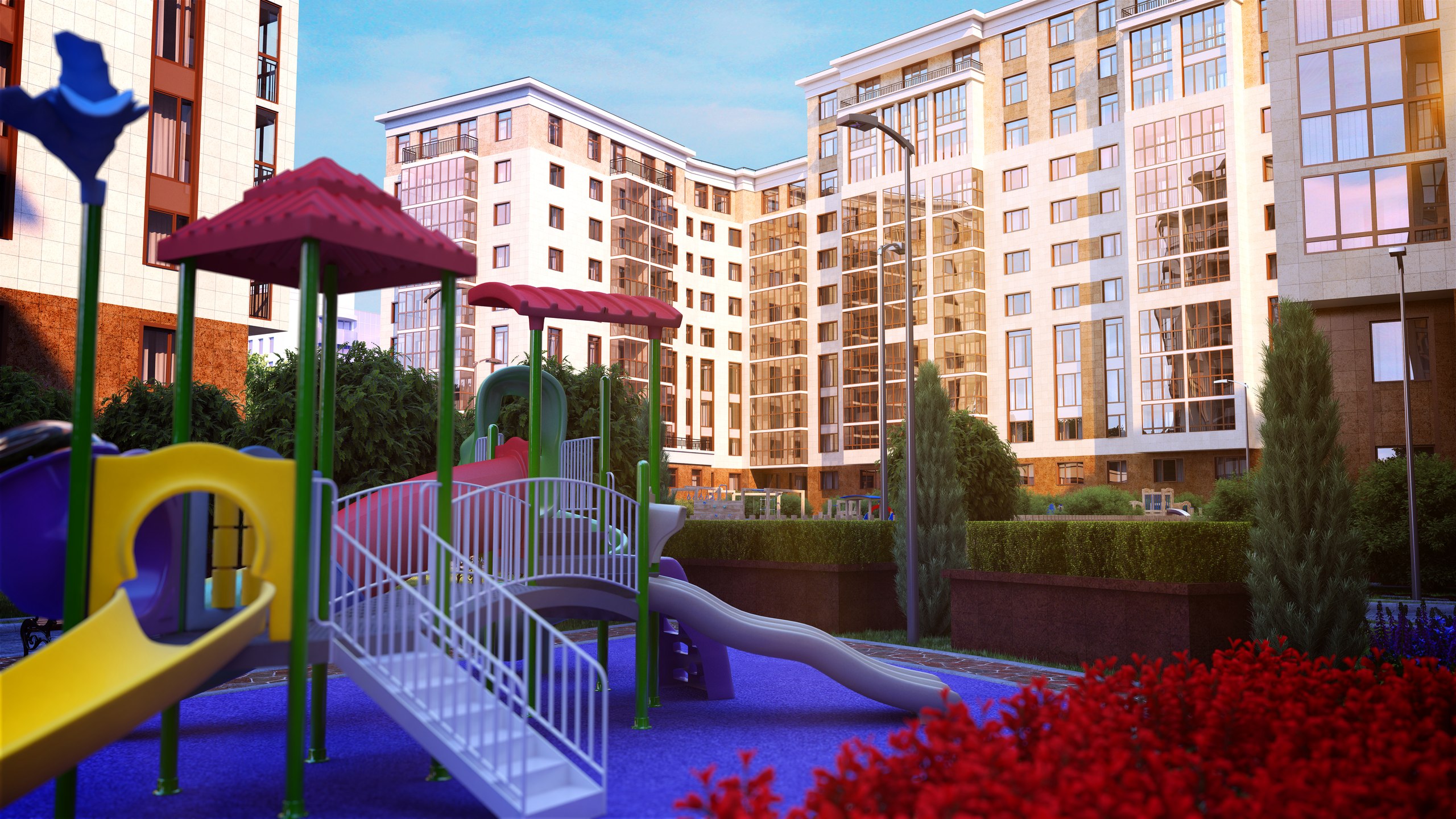Детские игровые площадки с безопасным каучуковым покрытием;