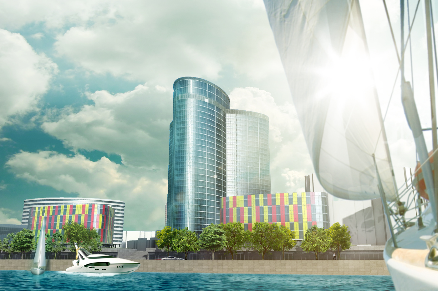 В 300-х метрах от Lotos Tower находится пляжная зона. Здесь планируется построить яхт-клуб с пристанью, где владельцы яхт всегда смогут пришвартоваться.