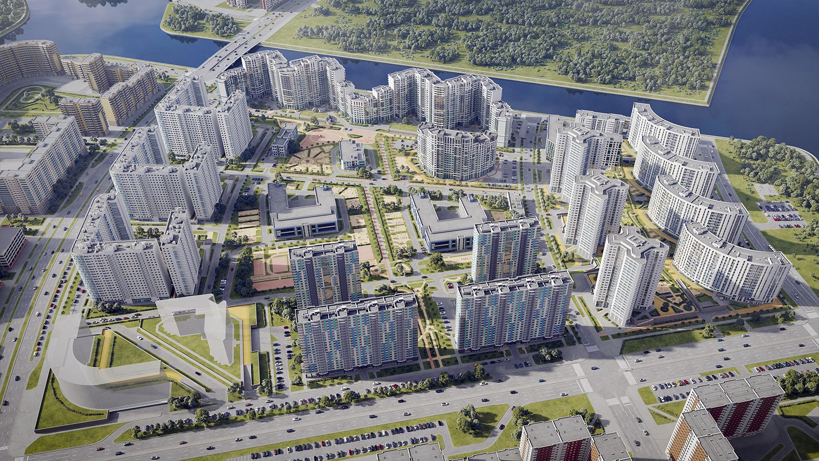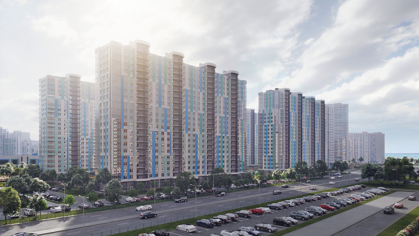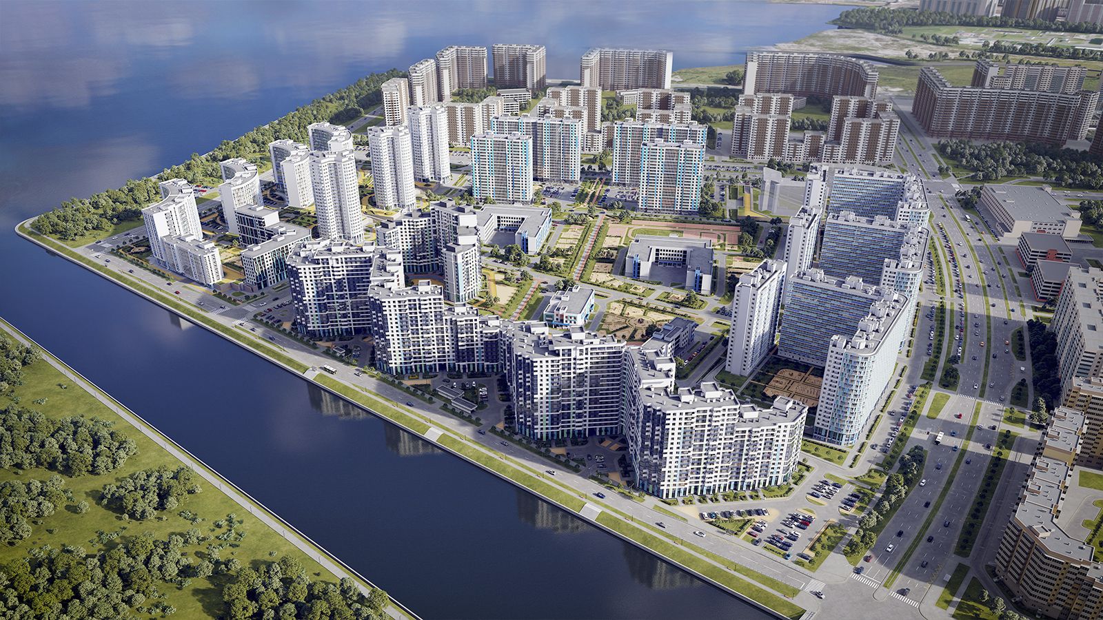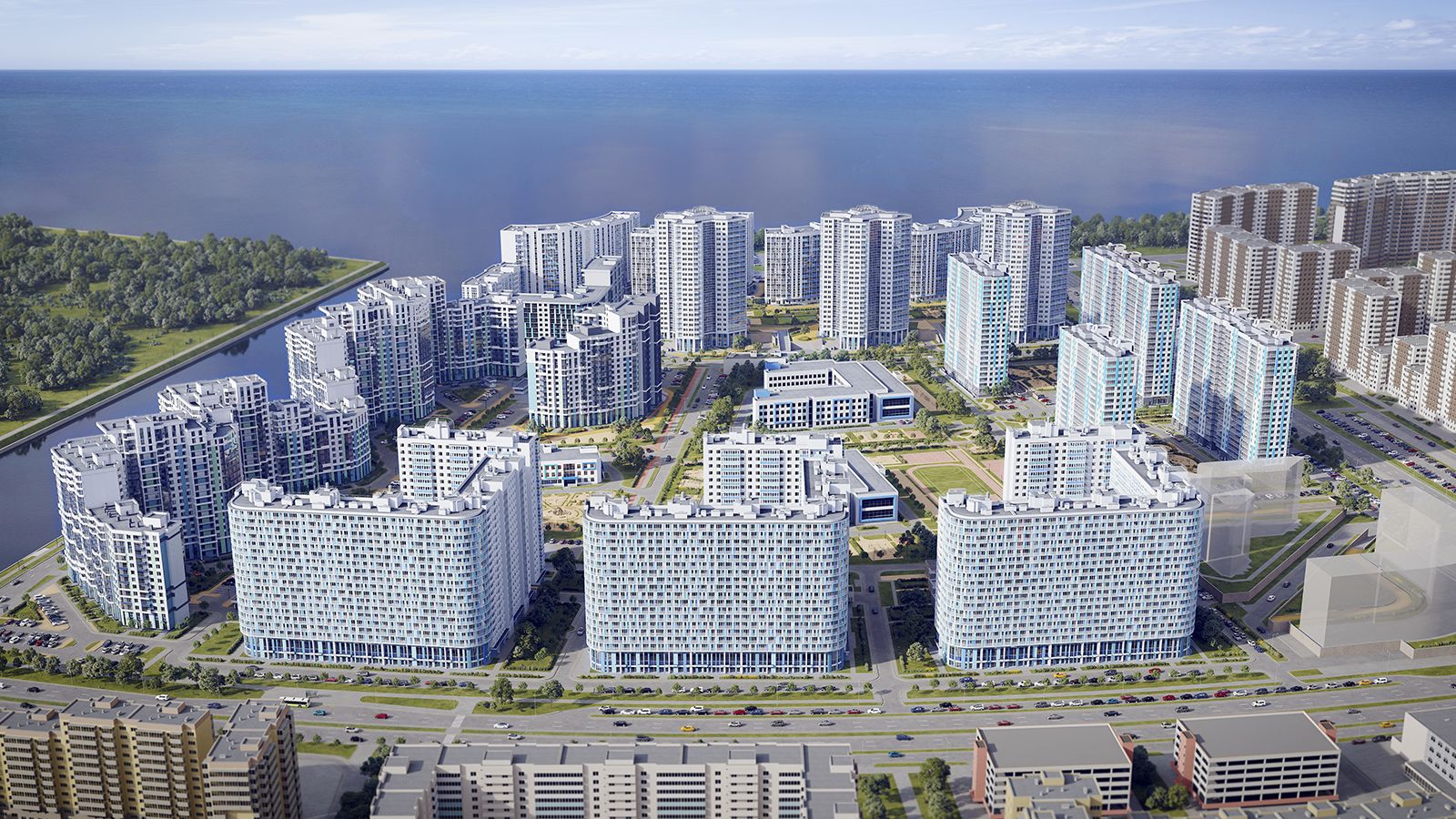 Всего в составе масштабного проекта предусмотрено 15 монолитных разноэтажных жилых зданий комфорт-класса и выше, выполненных в едином средиземноморском стиле, навеянном живописными видами, открывающимися из окон на южное побережье Финского залива и Дудергофского канала.