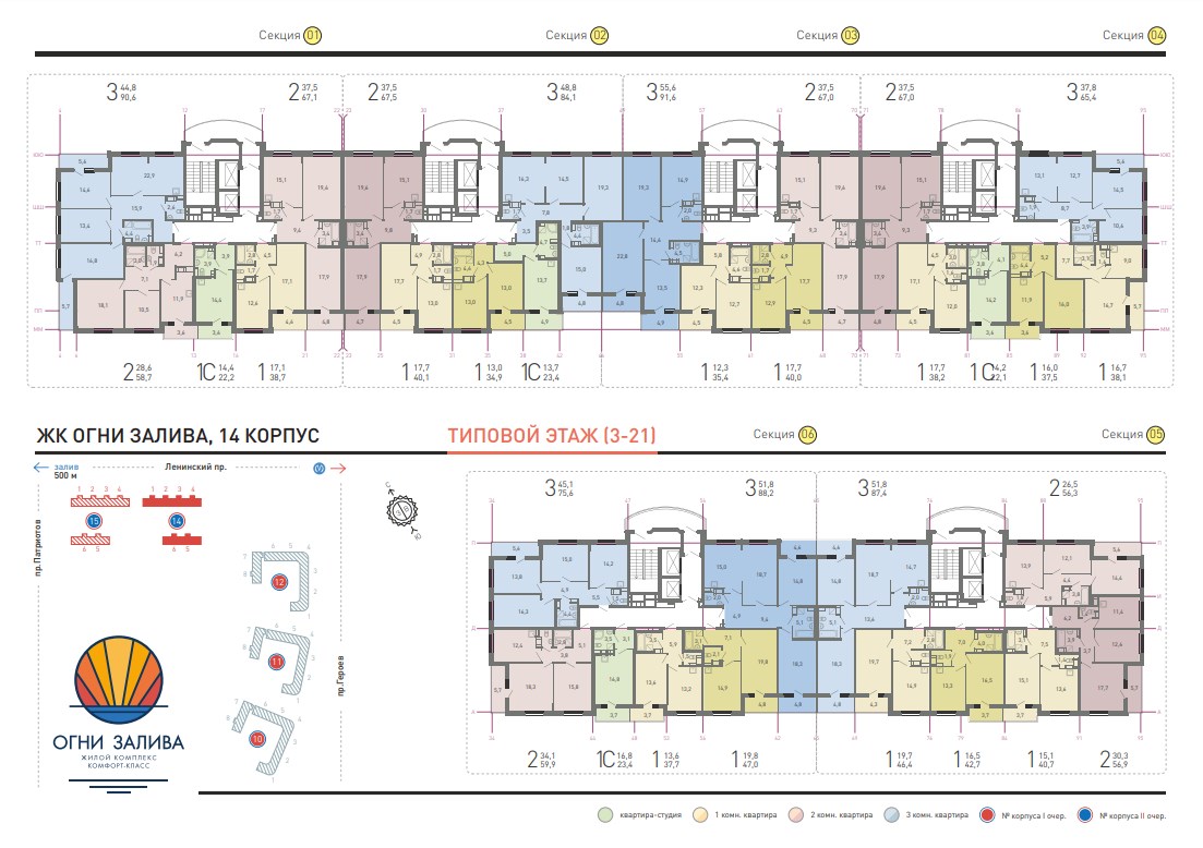Поэтажный план корпуса 14 этажи 3-21