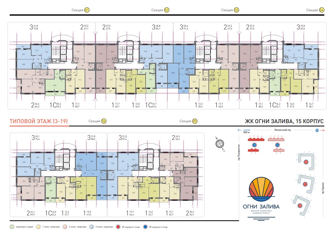 Поэтажный план корпуса 15 этажи 3-19