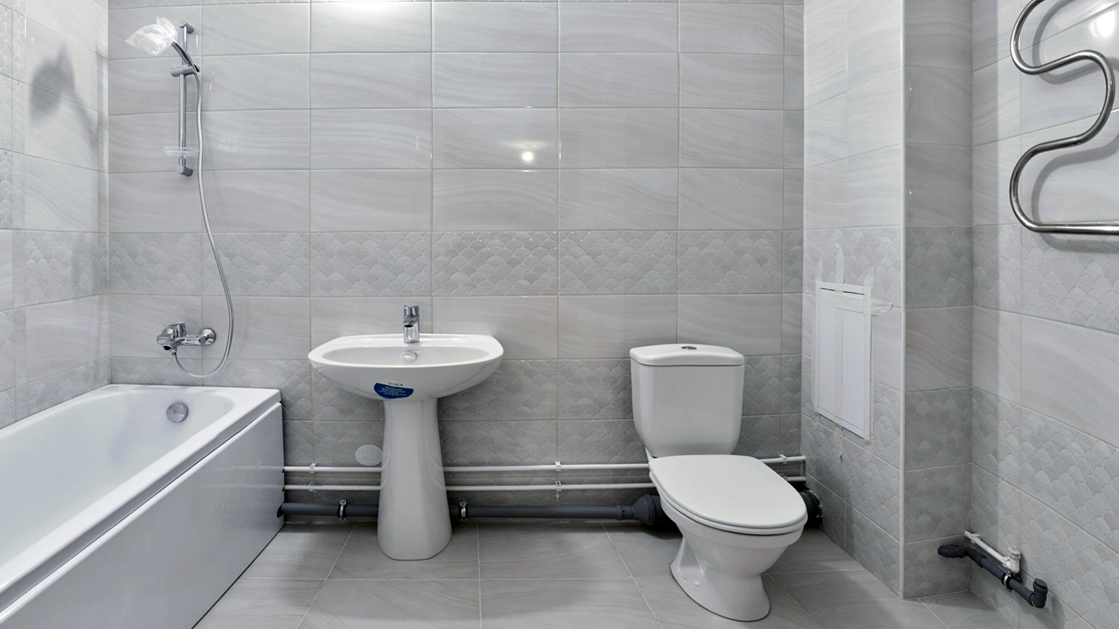 ванна, раковина, унитаз, смесители;
