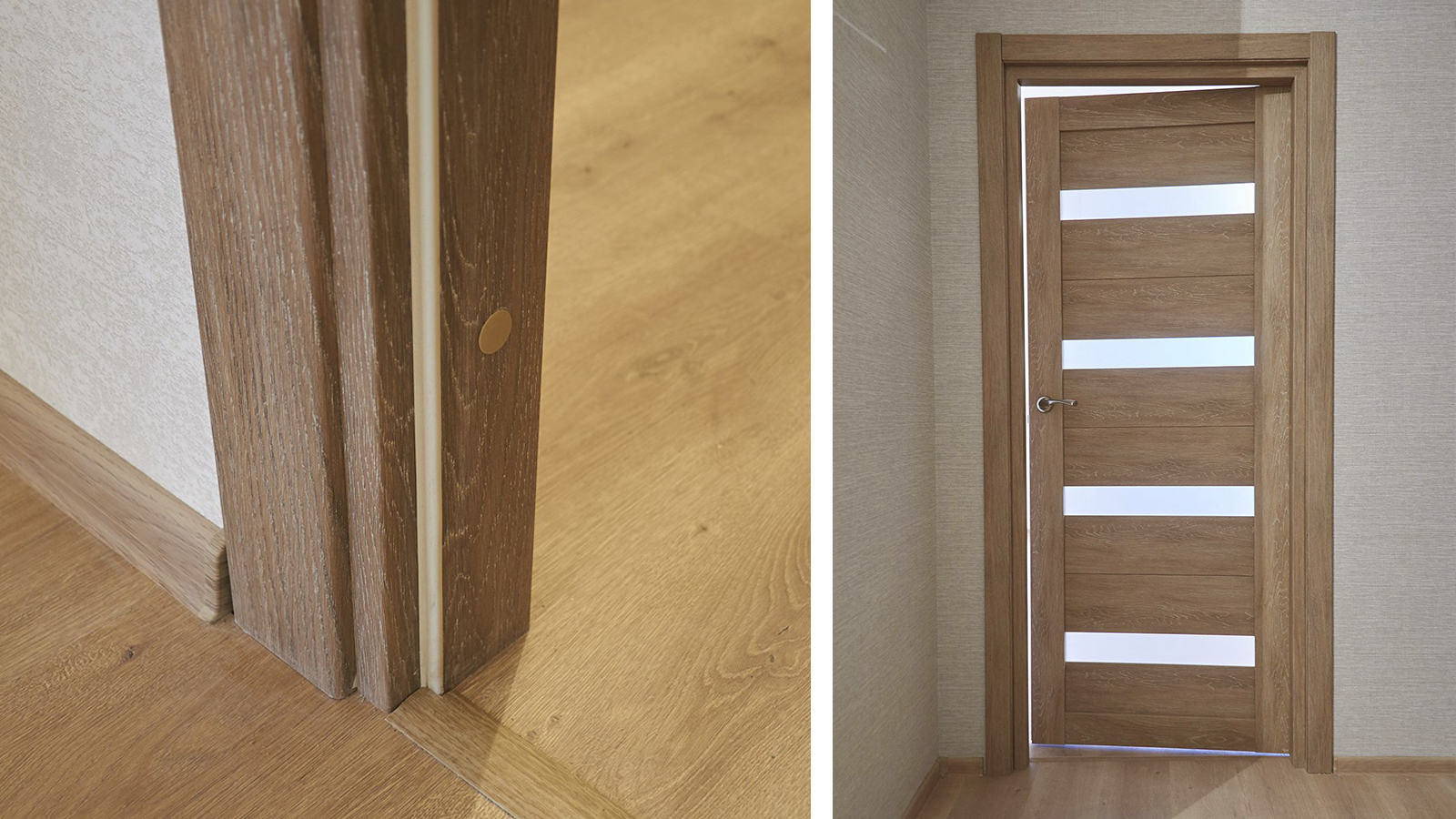 полы в комнатах, на кухне и коридорах покрыты ламинатом, плинтус подобран в тон ламината;
