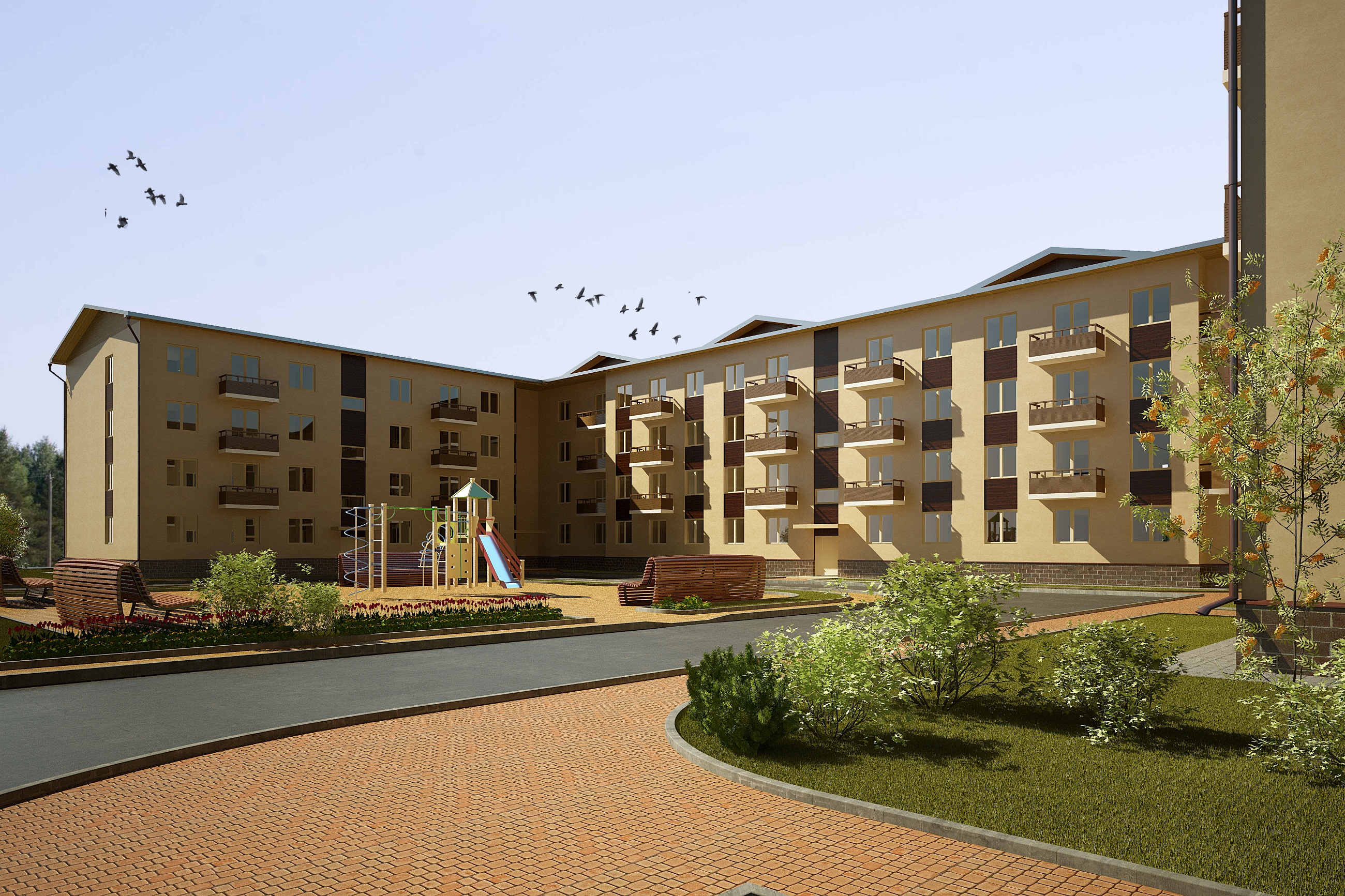 • 4-этажный кирпично-монолитный комплекс;