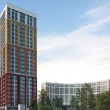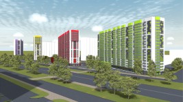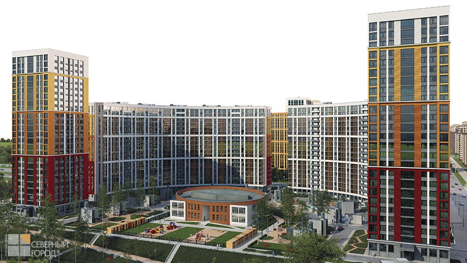 Первая очередь состоит из 2-х дугообразных корпусов (19 этажей) и 2-х башен (27 этажей), которые рассчитаны на 1510 квартир. Благодаря расположению домов по периметру участка формируется единое просторное дворовое пространство, которое будет благоустроено с учетом последних европейских трендов.