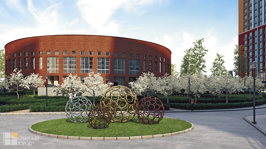 В центре двора разместится детский сад на 80 мест, который возводится одновременно с 1-й очередью. Его территория имеет отдельное ограждение и зону для прогулок и игр.