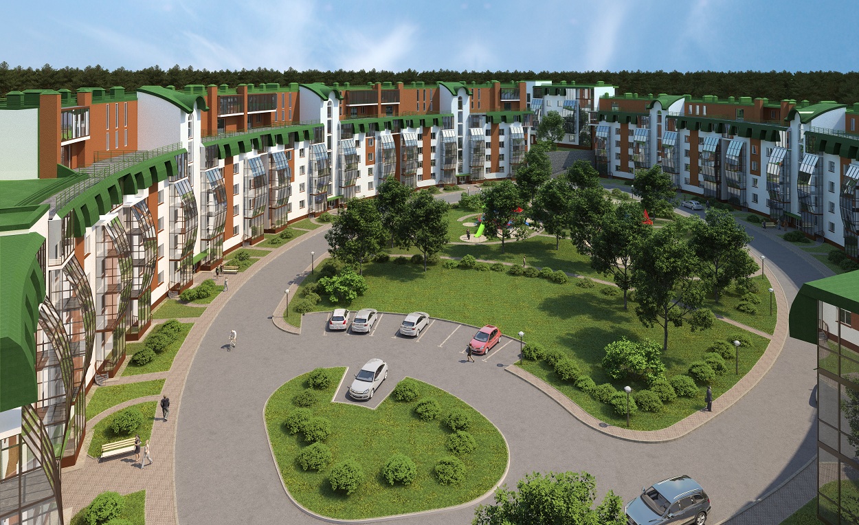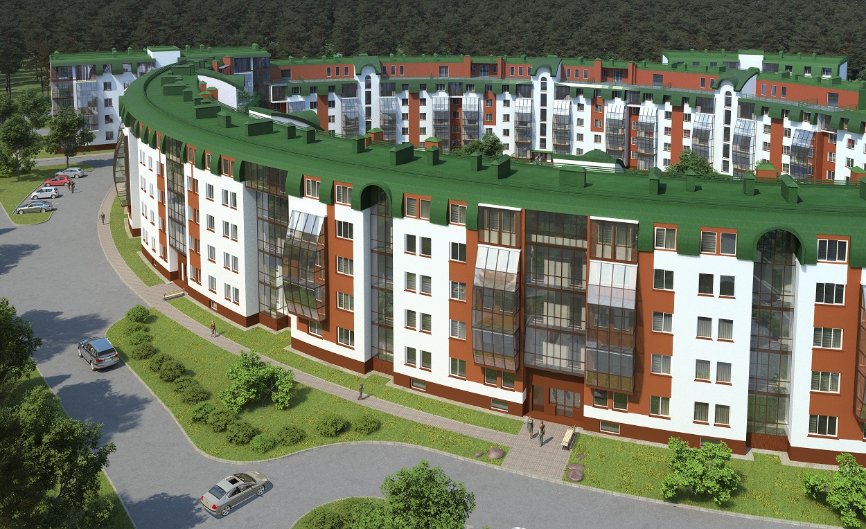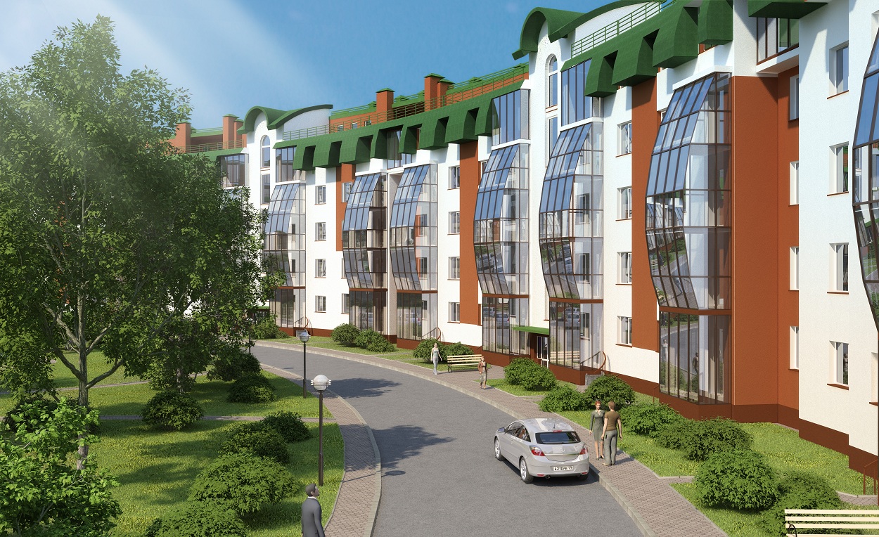 Комплекс будет состоять из четырехэтажных корпусов с мансардой, изогнутых плавными дугами, образующими обособленное закрытое пространство.