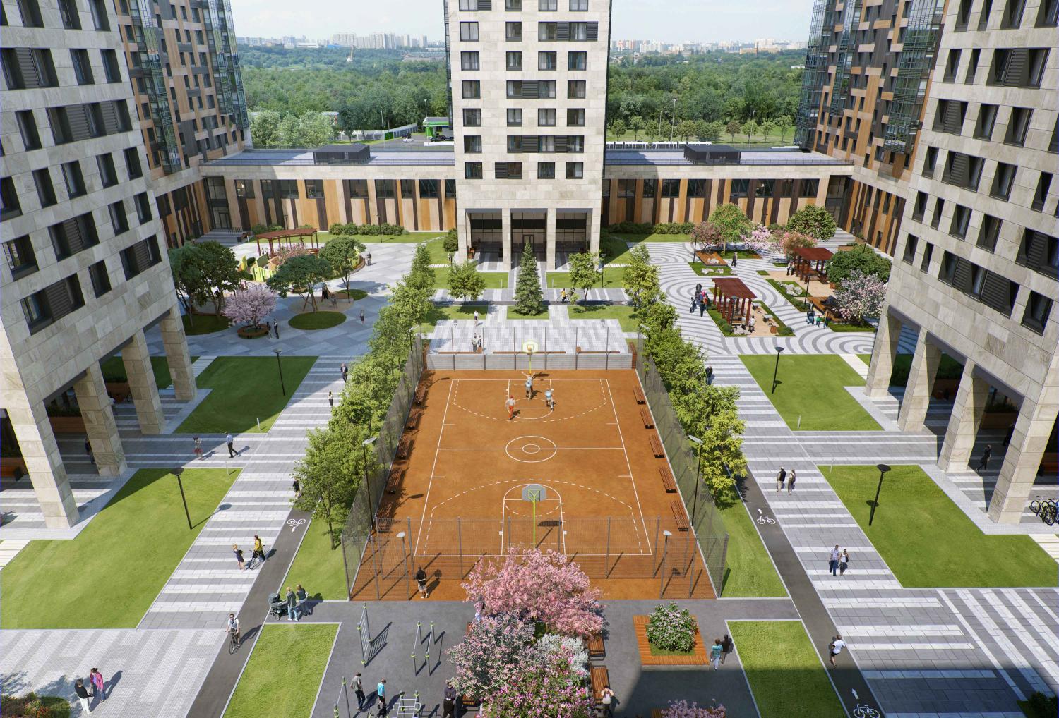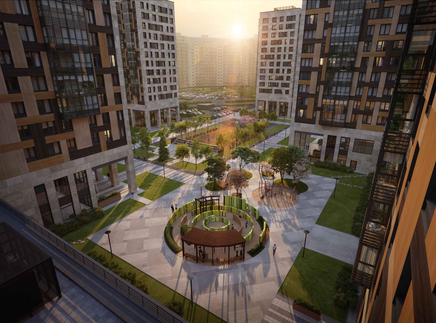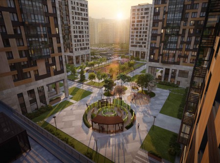 Территория жилого комплекса закрыта для проезда транспорта. Припарковать автомобиль можно будет либо в полузаглубленном крытом паркинге, либо на открытой охраняемой автостоянке.