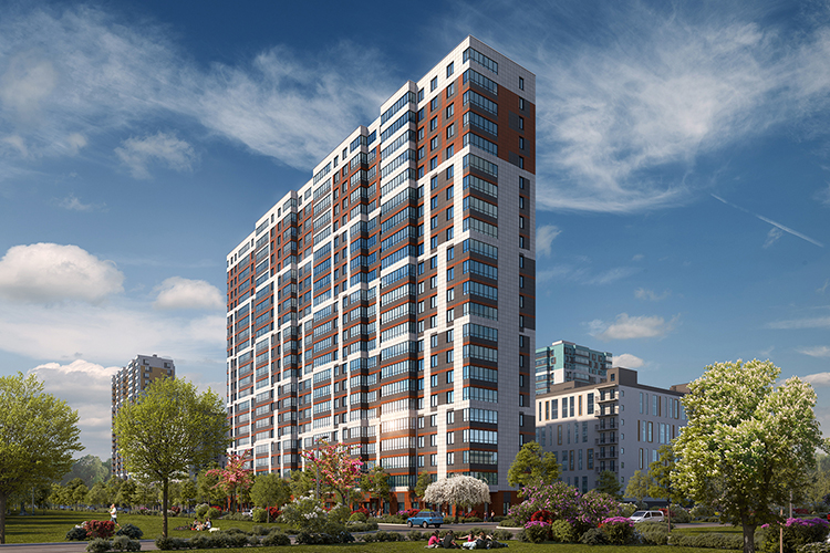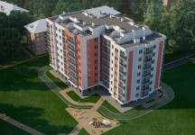 Индивидуальная архитектура комплекса находит свое отражение в ярких цветах фасадов. Современные решения, применяемые при проектировании дома, позволят гармонично вписать проект в окружение. Архитектурная композиция здания прекрасно сочетает в себе контрастные цвета и различные пространственные объемы. Акценты на выступающие части здания придают проекту внешнюю динамичность. В облицовке используется декоративный бетонный камень, носящий не только эстетическую, но и практическую функцию.