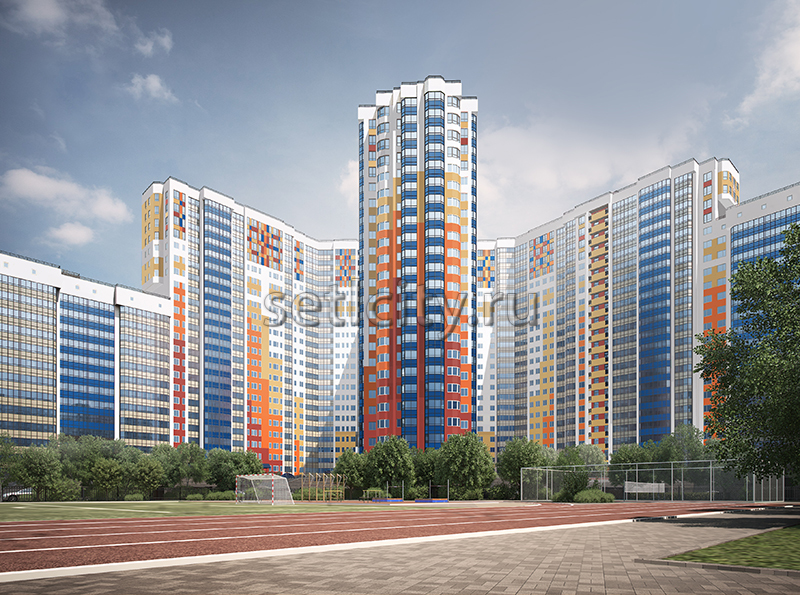 Жилая часть проекта «Полюстрово парк» представляет собой кирпично-монолитное здание оригинальной формы и имеет переменную этажность — от 14 до 23 этажей. Архитектурное решение фасада выдержано в песочно-коричневой гамме с акцентами синего цвета. Здесь запланировано более 2300 квартир с полной отделкой — от студий до трёхкомнатных.