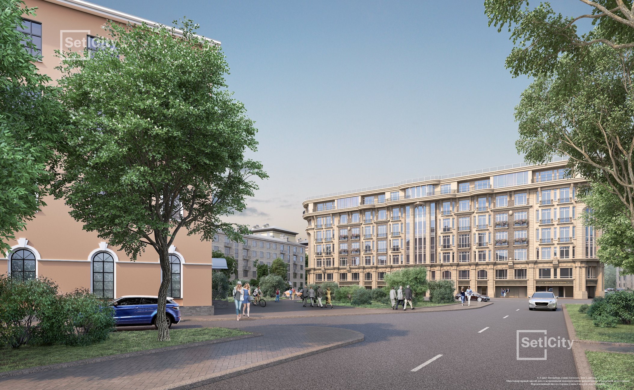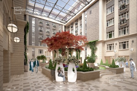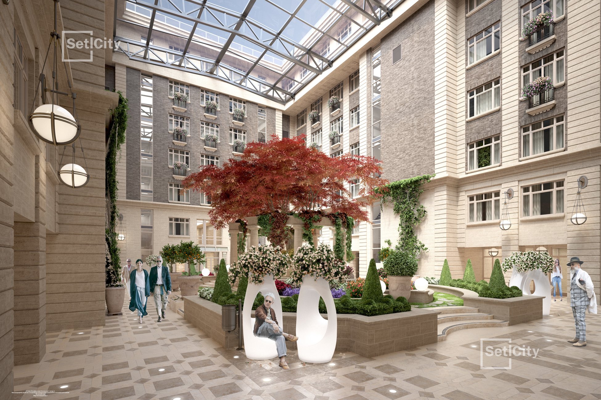 Парадный вход Victory Plaza обращен в сторону Московского проспекта. Центральная часть дома — двор-атриум со стеклянным куполом, в центре которого расположится изящный зимний сад с ротондой. Здесь предусмотрена стойка reception и зона для встреч и переговоров. Через этот двор, наполненный светом, осуществляется вход в комплекс.