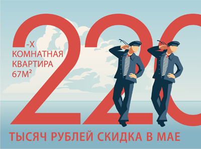 Акция «Минус 220 в мае на 2-х комнатную квартиру» действует при заключении ДДУ до 31 мая 2018 года на покупку 2-х комнатной квартиры с полной отделкой площадью 67 м2 в строящихся корпусах № 14 и № 15 II очереди ЖК «Огни Залива». Покупателям предоставляется скидка 220 тысяч рублей с цены договора.