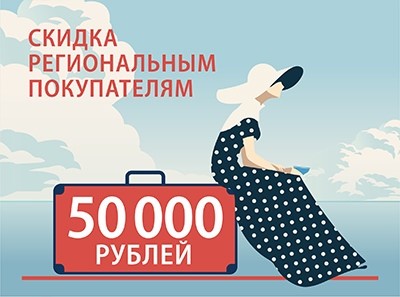 Скидка в размере 50 тыс. руб. предоставляется покупателям с постоянной регистрацией на территории РФ за пределами Санкт-Петербурга и Ленинградской области при покупке квартиру в ЖК «Огни залива»: