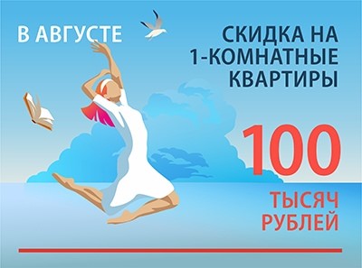 При заключении ДДУ с 01.08.2019 г. по 31.08.2019 г. на покупку любой 1-комнатной квартиры во II очереди строительства ЖК «Огни залива» (корпус 14, корпус 15) предоставляется скидка 100 тыс. руб. от стоимости квартиры при условии первого взноса в размере 30% стоимости квартиры, при 100% оплате или ипотеке. Адрес строительства: Санкт-Петербург, Ленинский проспект, участок 248 (северо-западнее пересечения улиц Доблести и Маршала Захарова).