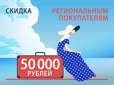 Скидка в размере 50 тыс. руб. предоставляется покупателям с постоянной регистрацией на территории РФ за пределами Санкт-Петербурга и Ленинградской области при покупке квартиру в ЖК «Огни залива»: