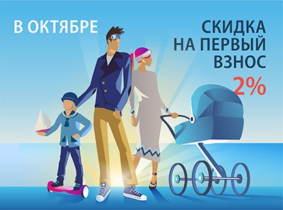 При покупке любой квартиры во II очереди строительства (корпуса 14 и 15) предоставляется скидка 2% на первый взнос. Первый взнос по акции «Минус 2%» — от 30% стоимости квартиры, включая ипотеку. Предложение действительно при заключении ДДУ с «01» по «31» октября 2019 года. Все квартиры сдаются с полной отделкой.