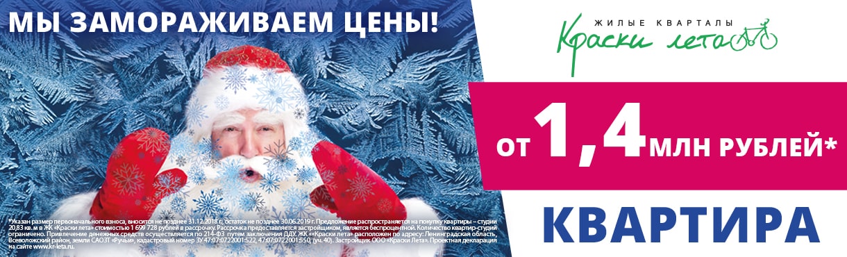 Только в декабре в ЖК «Краски Лета» самая выгодная цена на квартиры при 100% оплате + рассрочка 300 000 рублей на 6 месяцев без переплаты*.