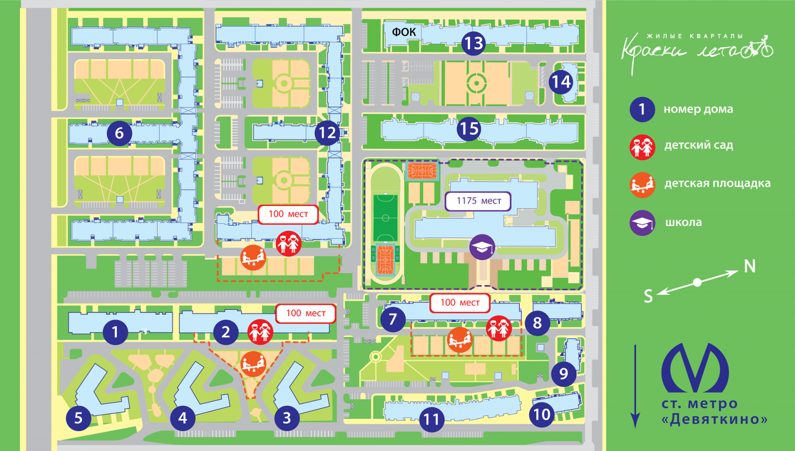Это масштабный проект комплексного освоения территории, в составе которого будет построено 15 жилых домов, коммерческие помещения и объекты социальной инфраструктуры - школа с бассейном, детские сады, места для отдыха и занятий спортом. На территории выполнят благоустройство и комплексное озеленение: будут проложены пешеходные аллеи, обустроены детские игровые площадки, спортивные зоны со специальным покрытием.