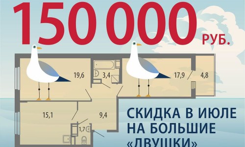 Со 2 по 18 июля всем покупателям - дополнительные скидки до 400 тысяч рублей на квартиры за участие в морской фотосессии.