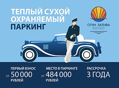 В декабре 2019 г. при приобретении машино-места в паркинге I очереди строительства ЖК «Огни залива» (корпуса 10, 11, 12 по адресам пр. Героев, д. 23, д. 25, к. 1, д. 27, к. 1) предоставляется рассрочка платежей на 3 года при условии первого взноса от 50 тыс. руб. Рассрочка предоставляется застройщиком ООО «Дудергофский проект». Платежи по рассрочке ежемесячные. Машино-места в отапливаемом подземном паркинге от 484 тыс. руб. Входы в паркинги организованы из парадных. Дома сданы и заселены.