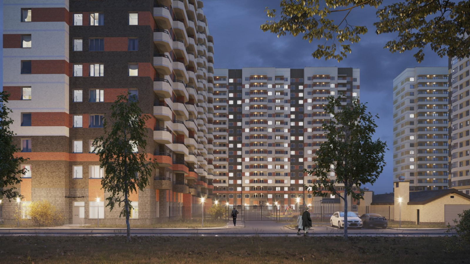 Здания имеют закрытый внутренний двор, свободный от машин. Здесь расположатся современные и безопасные детские площадки, места для занятий спортом и пространства для отдыха. Парковочные места для жителей и их гостей разместятся по периметру. Также под домами предусмотрен подземный паркинг на 20 машиномест.