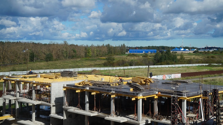 Во второй очереди строительства идёт подготовка песчаного основания под фундаментную плиту. Напомним, что ЖК «Молодежный квартал» расположен в поселке Романовка в 13 км к северо-востоку от Санкт-Петербурга.