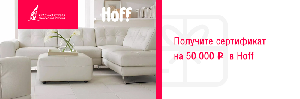 Строительная компания «Красная Стрела» дарит сертификаты на 50 тыс. руб. в гипермаркеты мебели и товаров для дома Hoff при покупке любой квартиры в МЖК «Неоклассика», МЖК «Горки Парк» и ЖК «Аист».