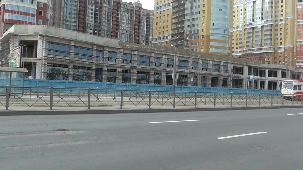 Остекление ТРК по всему периметру (Кустодиева, Просвещения, Руднева) сегодня выполнено на 90%. По всему периметру идет облицовка фасадов утеплителем. На эксплуатируемой кровле ТРК залита стяжка между корпусами 1–1 и 1–2, идет устройство гидроизоляции. Со стороны второй очереди на ТРК закончена кирпичная кладка и облицовка декоративным камнем. Монолитные работы на всех выходах из ТРК на эксплуатируемую кровлю завершены на 95%. Начата кирпичная кладка и облицовка. Закончен монтаж направляющих зенитных фонарей, начата заливка фундамента перехода с первой очереди до ФОК.