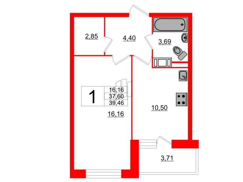 1-комнатная квартира в ЖК «Вернисаж» за 3 278 720 руб.